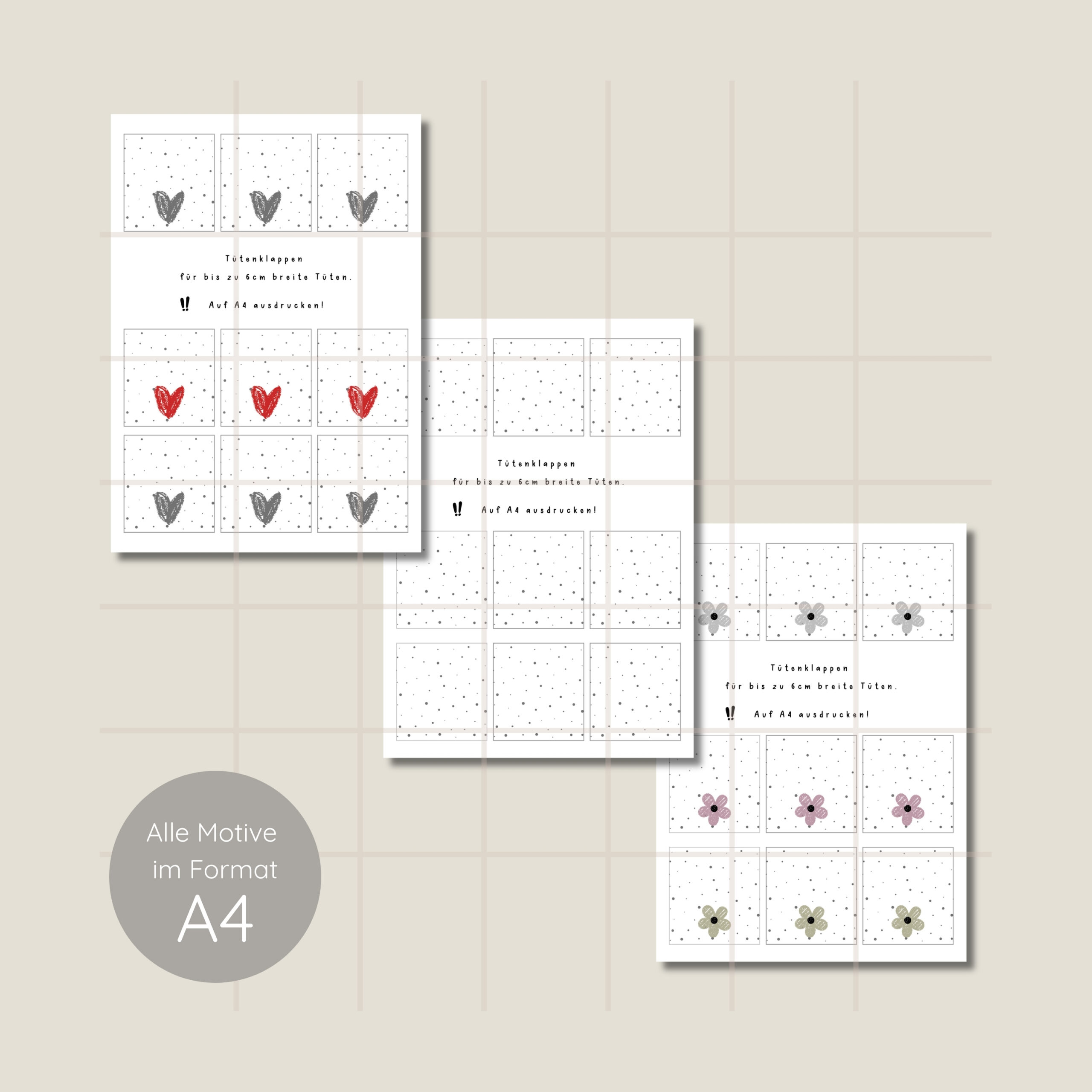 3 DIN A4-Seiten mit passenden Tütenklappen