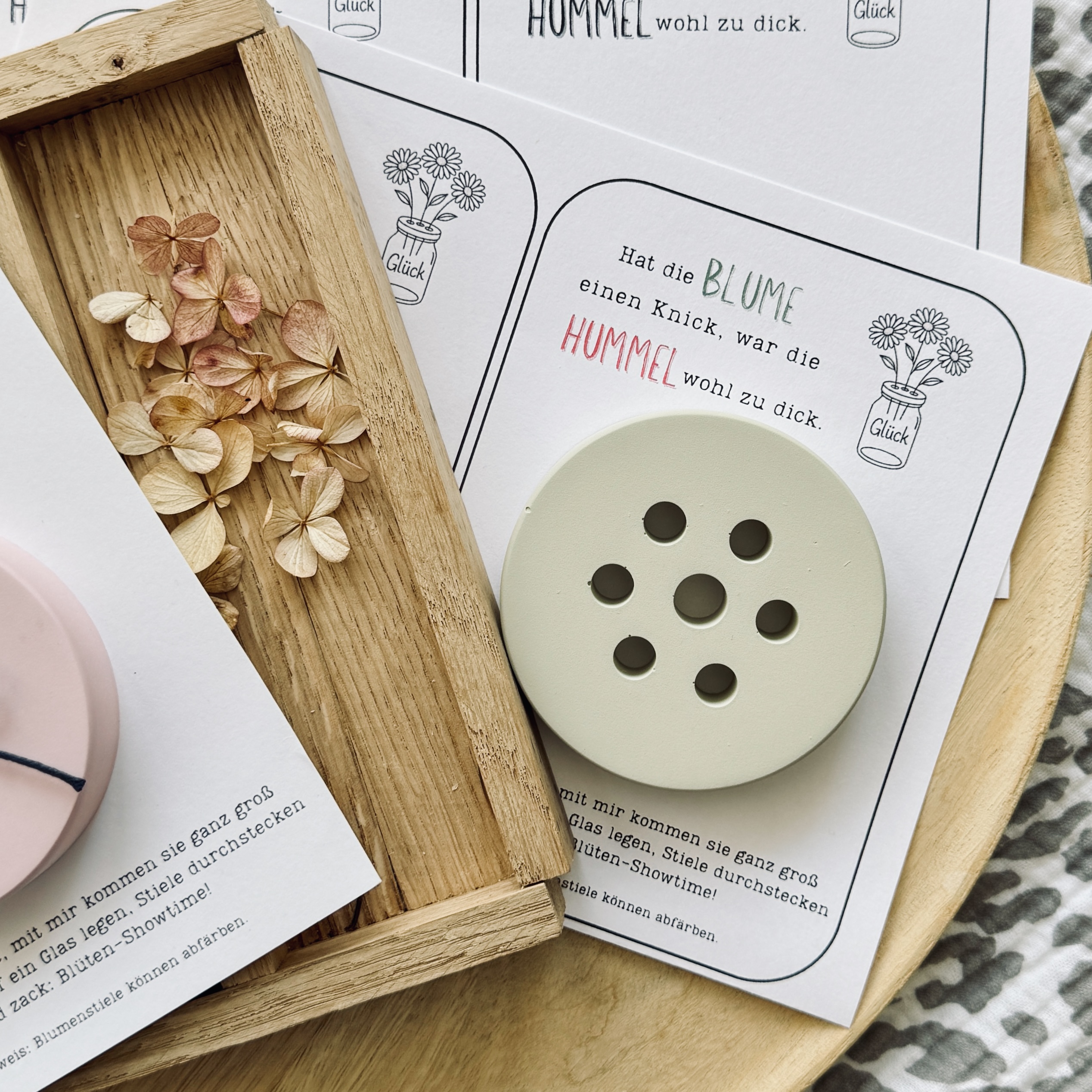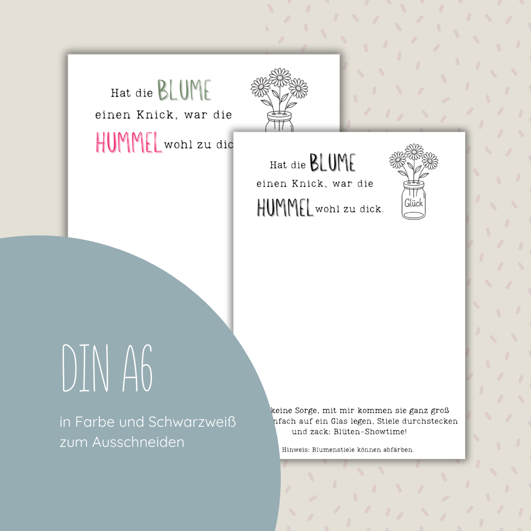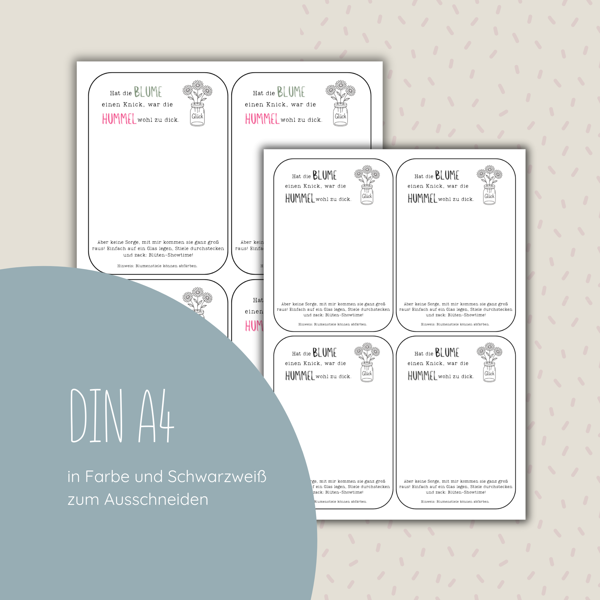Diese Druckdatei ist dafür gedacht, kleine Blumenretter liebevoll und stilvoll zu verpacken. Einfach ausdrucken, wahlweise auf DIN A4 zum Ausschneiden oder direkt auf DIN A6, und schon ist der Blumenretter hübsch verpackt.