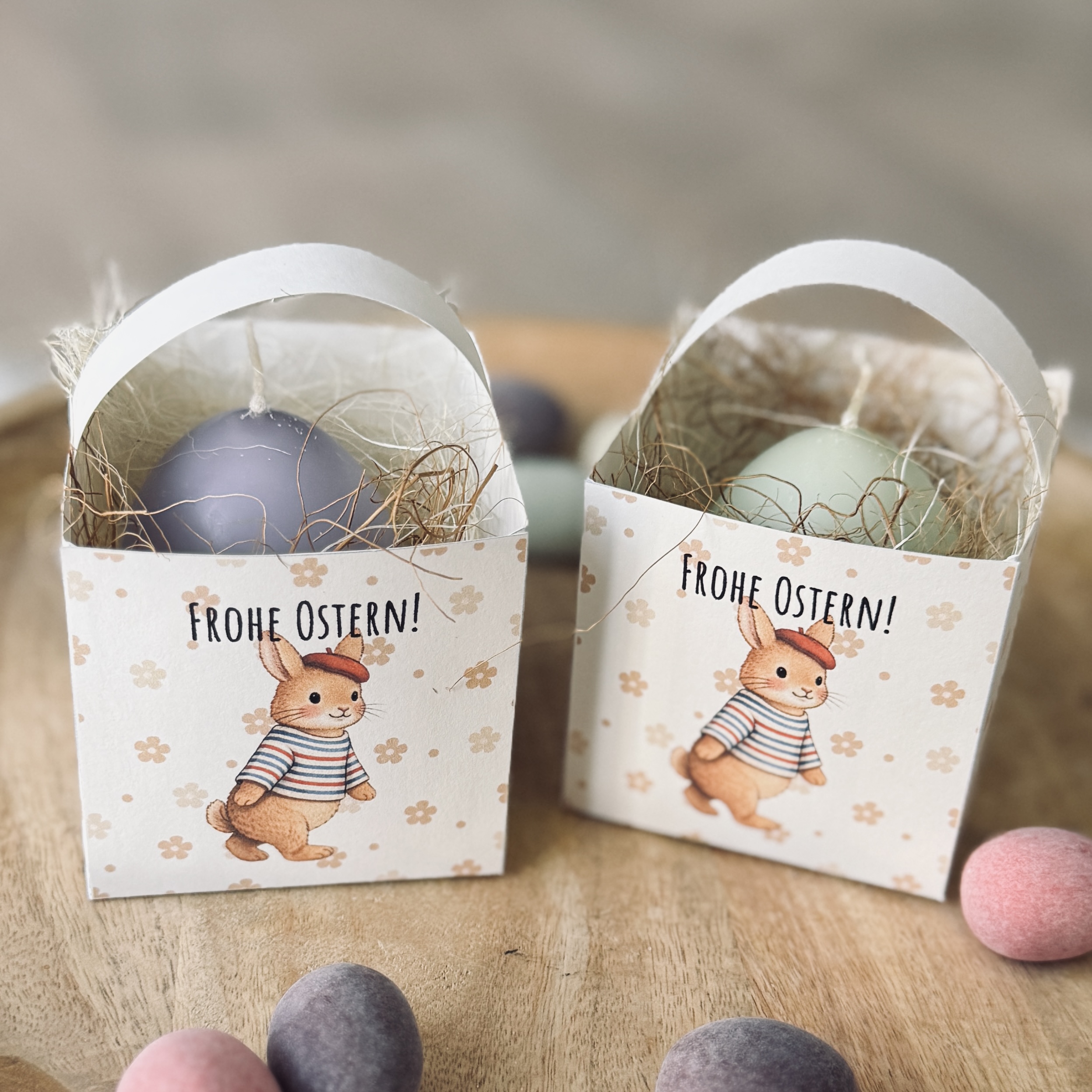 einem Bastelbogen für kleine Osterkörbchen mit Henkel.