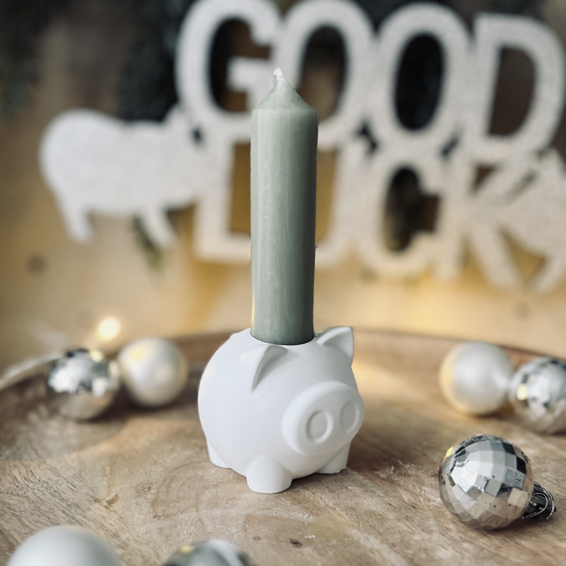 Hej, das ist Rosi. Handgegossen, kerzengeschmückt und Expertin darin, Lächeln, Glück und Hoffnung zu verteilen.