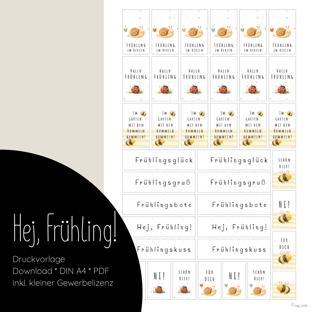 Mit dieser liebevoll gestalteten Druckvorlage erhalten Produkte, Geschenke oder kleine Aufmerksamkeiten im Handumdrehen einen frischen Frühlingslook. Perfekt zum Anhängen, Dekorieren und Freude schenken.