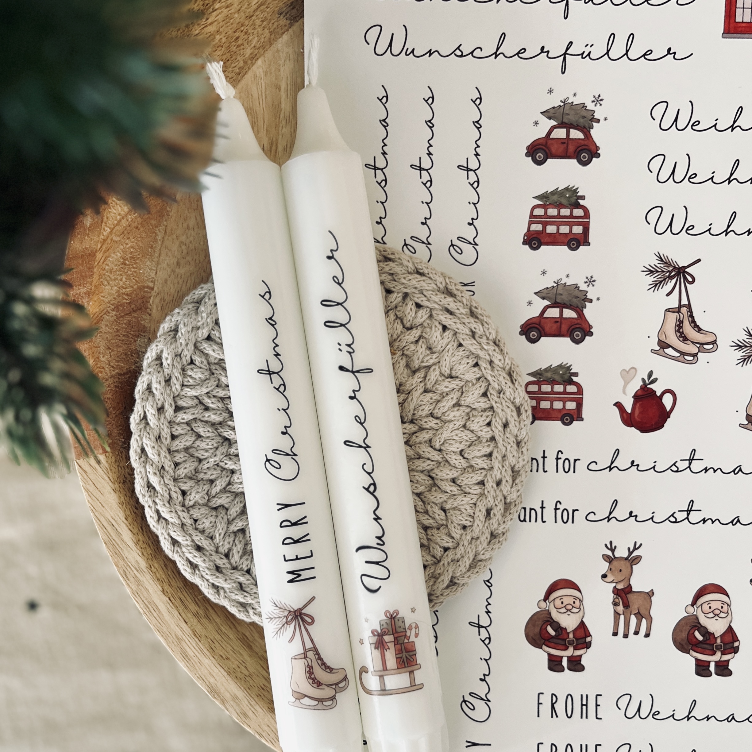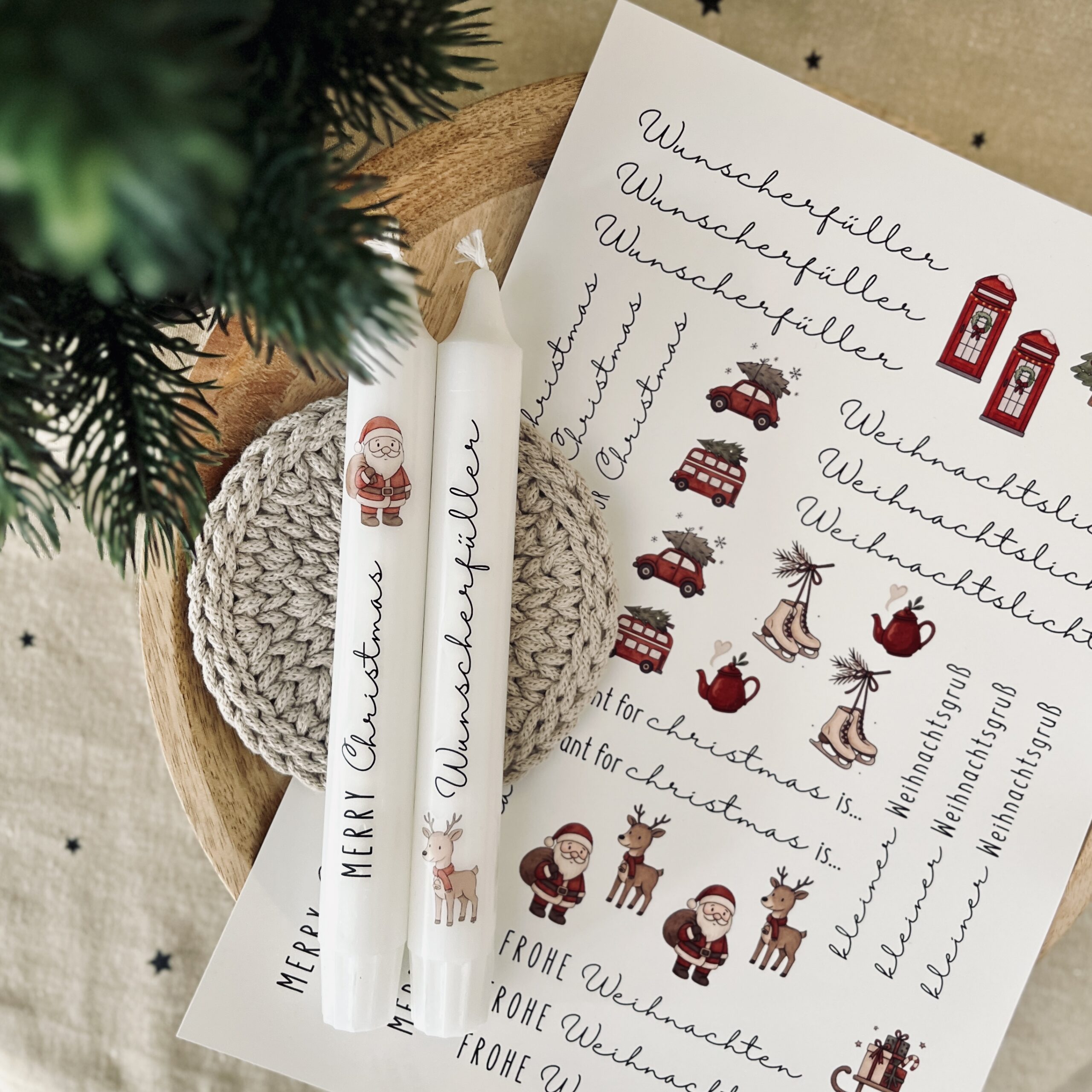 Die Vorlage wird als PDF-Datei bereitgestellt und kann nach dem Download auf Wasserschiebefolie gedruckt werden. Für ein optimales Ergebnis die Verarbeitungshinweise des Folienherstellers beachten und ggf. die Druckeinstellungen anpassen. So entstehen im Handumdrehen individuell gestaltete Kerzen.