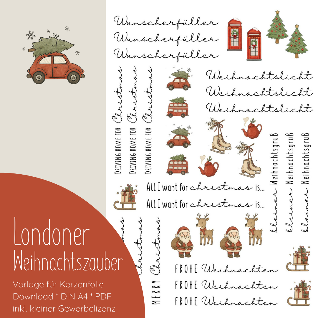 “Londoner Weihnachtszauber” Designvorlage für Kerzentattoos