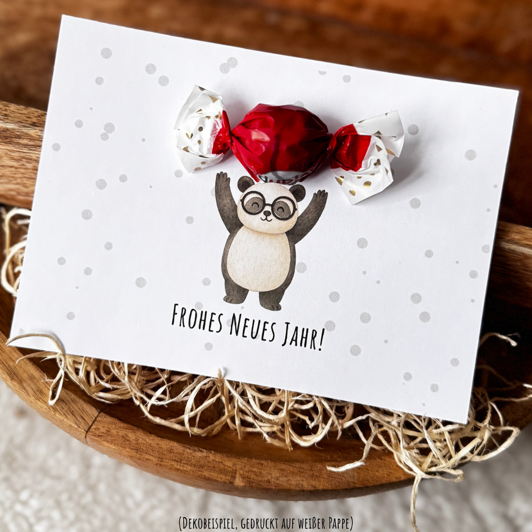 Diese liebevoll gestaltete Pandabär-Karte zeigt einen neugierigen Pandabären, der etwas Kostbares in seinen Pfoten hält. Eine süße Freude, die von Herzen kommt und perfekt zur Weihnachtszeit passt.