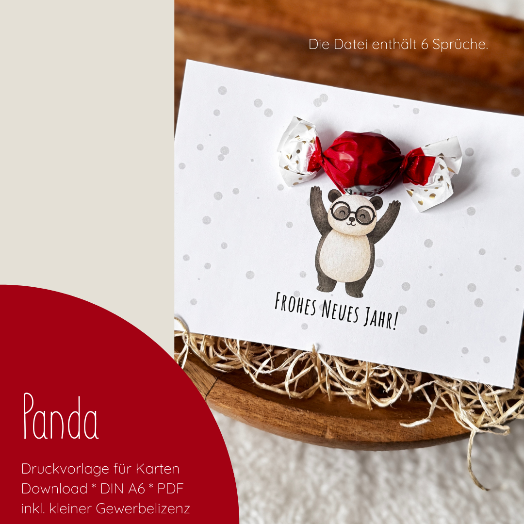 Süßer Pandabär, große Freude. Digitale Vorlage für Karten im PDF-Format.
