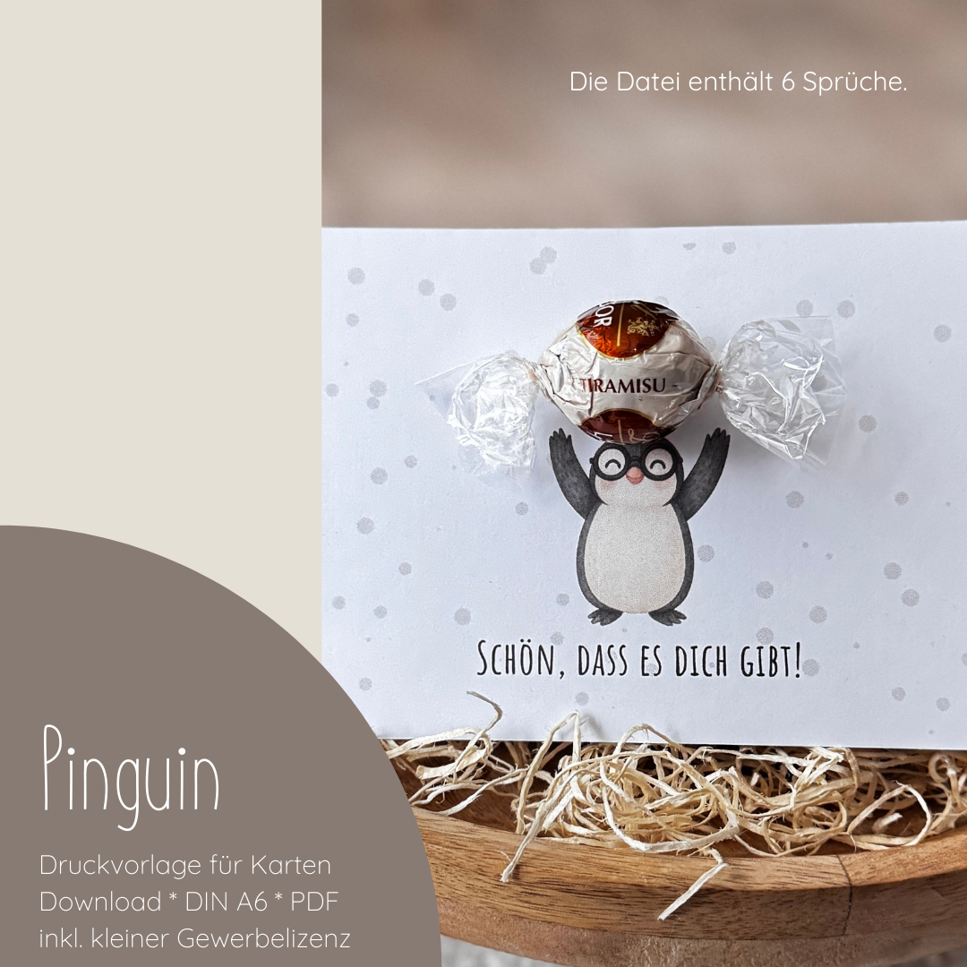 “Süßer Pinguin” Druckvorlage für Karten